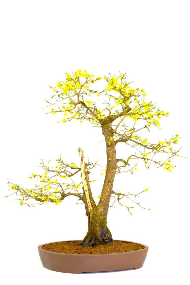 Fresh green leaves float from the branches through spring and summer, turning yellow/orange/brown during autumn. Even though this is a deciduous bonsai, they tend to retain their leaves quite well into winter.
