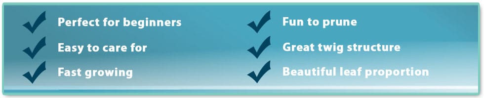 A bonsai with excellent twig structure & superb character throughout. Therefore, making it the beautiful representation of a woodland tree. In our opinion, this variety is the most perfectly proportioned, easy to care for and adaptable bonsai. It makes a superb bonsai!