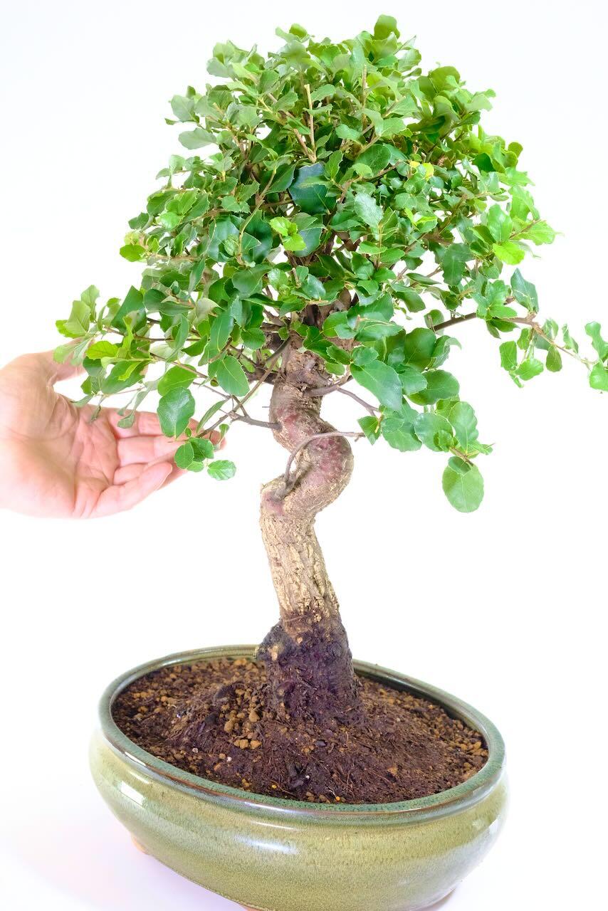 The Cork Bark Oak is one of the most iconic Mediterranean evergreen oaks. Loved for its deeply fissured, thick, corky bark. On this specimen this deep texture is just starting to develop. The species naturally develops dramatic bark texture early in life. As the tree matures, the bark becomes more rugged and sculptural, giving the bonsai an ancient woodland appearance that few species can match.
