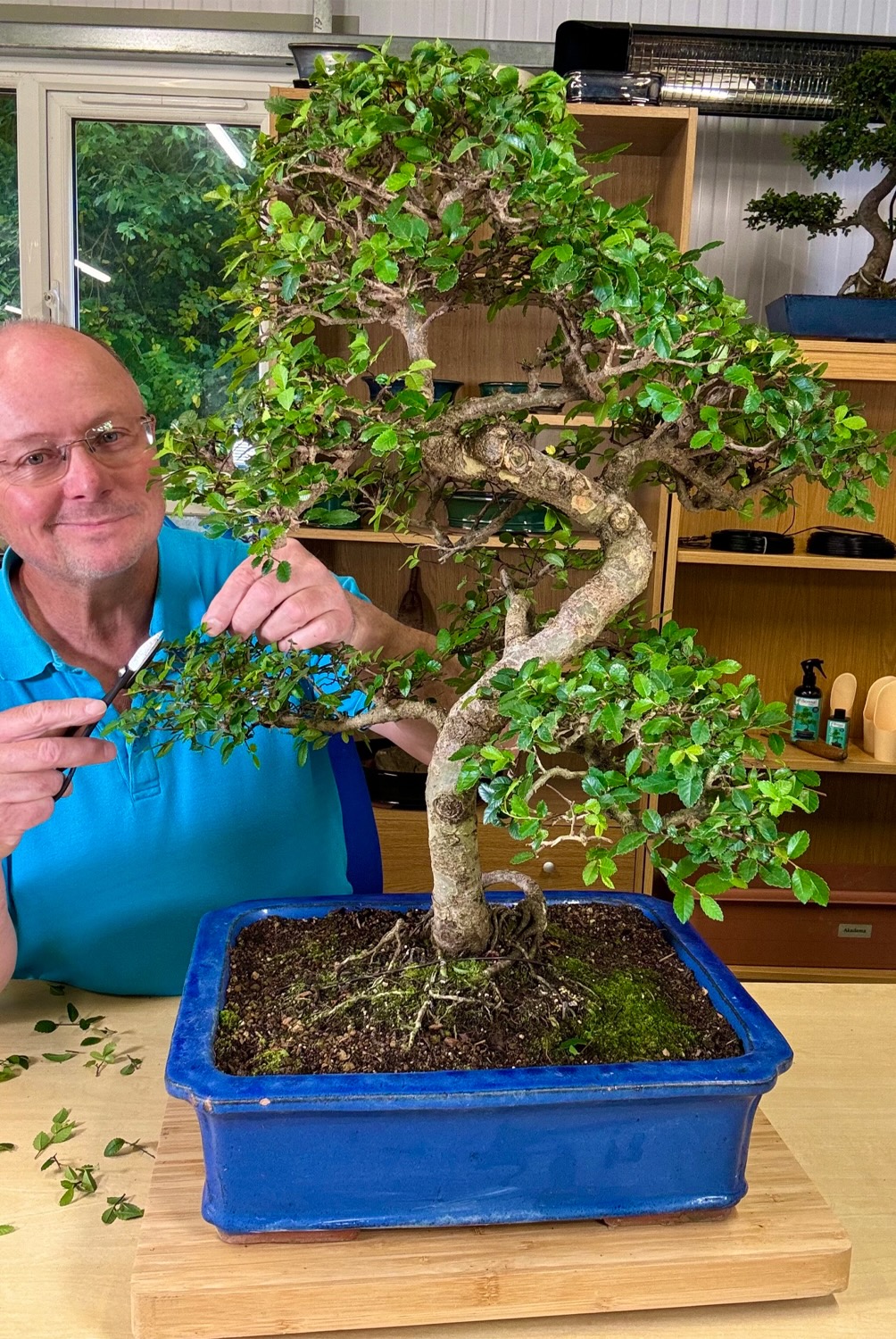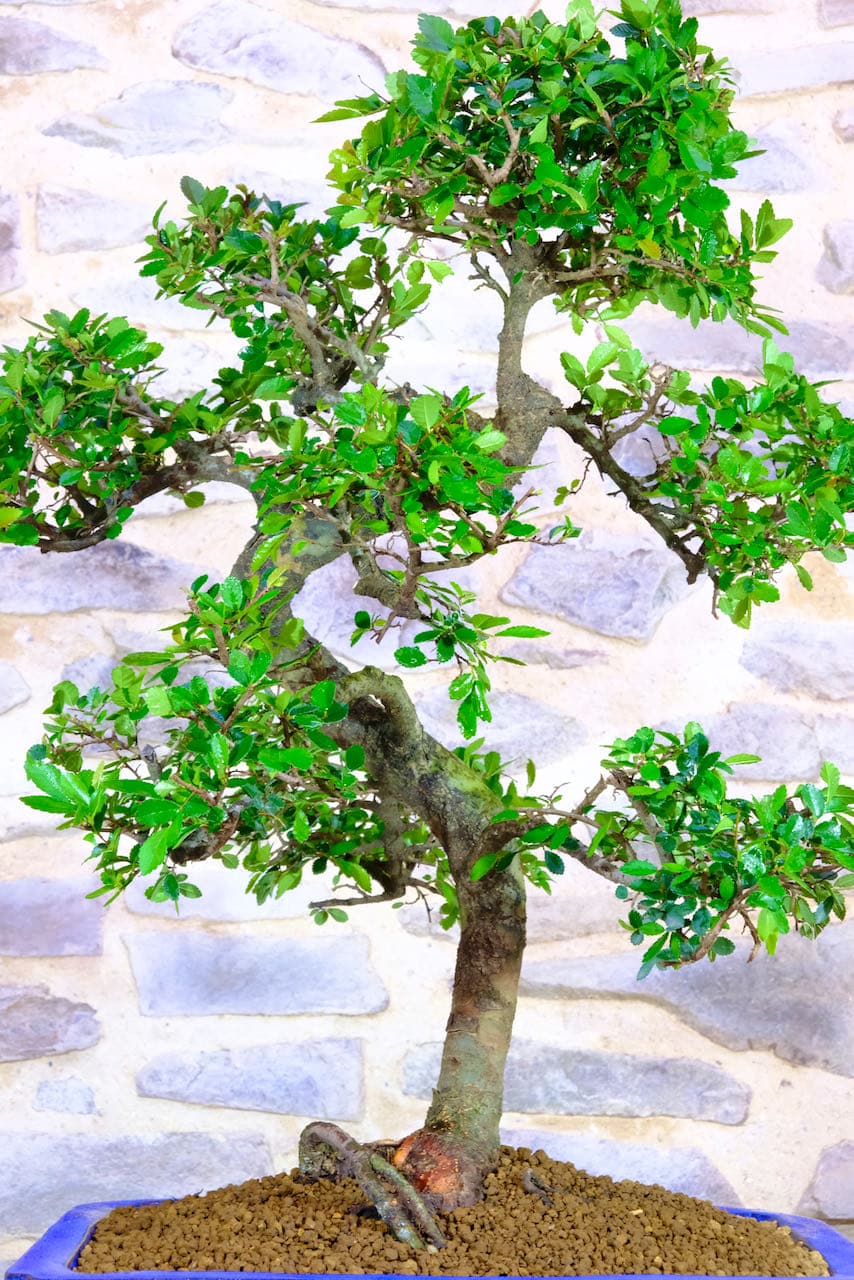 Huge Indoor Chinese Elm Indoor Bonsai with Lovely S-Shaped Trunk. Easy to Care For, Perfect for Beginners. This bonsai has the most beautiful and majestic stately appearance – extremely impressive and artistic. The trunk is absolutely stunning. 28 years old.