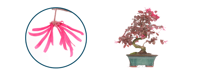 This little bonsai displays stunning purple foliage and bright pink spidery flowers. This is undoubtedly the most striking and colourful indoor bonsai. Ideal for beginners and fun as a starter bonsai tree.