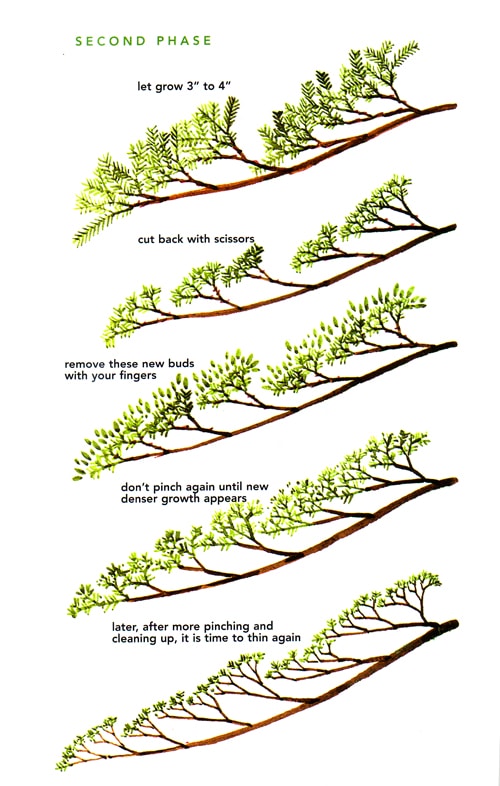 The ramification process includes pinching, pruning and tapering. When done correctly, the bonsai’s design will look much cleaner and it will look like a miniature tree. A bonsai with lots of ramification will be easier to shape and the natural taper gives the bonsai a more natural appearance.
