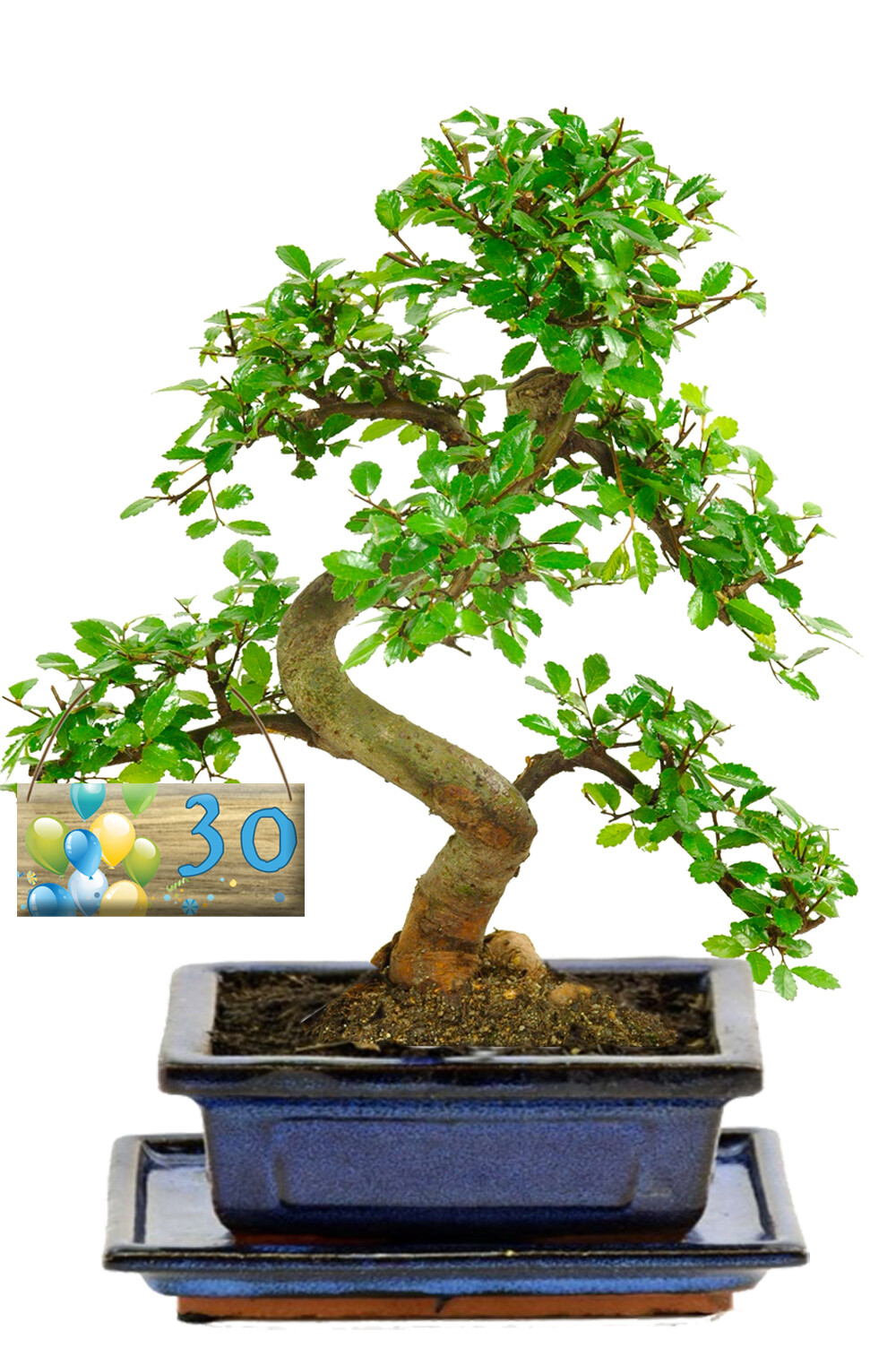Celebrate a 70th birthday with a meaningful and beautifully presented Chinese Elm (Ulmus parvifolia) bonsai. This charming 10-year-old indoor tree arrives in a classic blue ceramic pot with a matching drip tray, creating an elegant and eye-catching display; perfect for 70th Birthday Gifts. You can also choose the perfect wooden milestone tag from the drop-down menu, offering ages from 16th through to 80th, as well as a “Happy Birthday” option. As a result, you can customise the gift effortlessly for any special birthday.