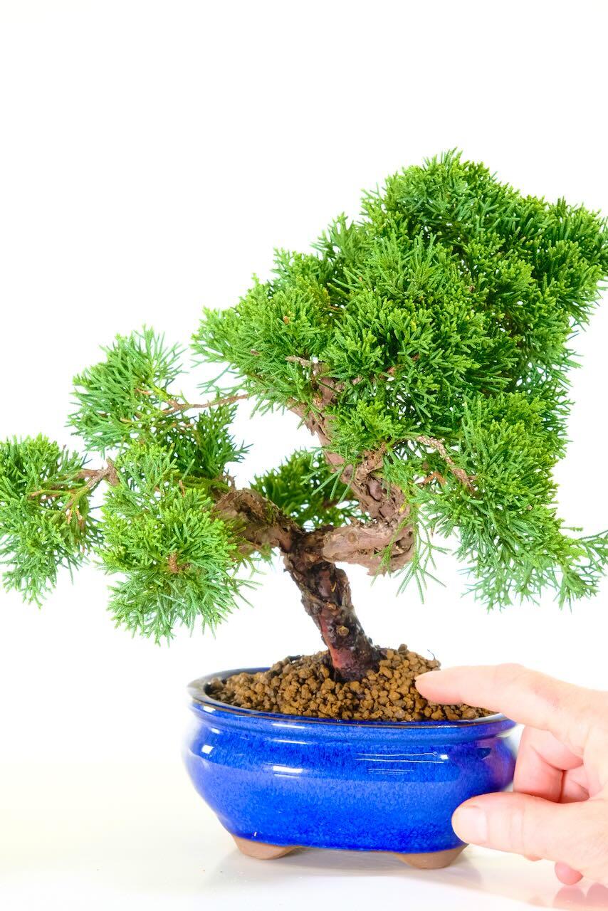 The Chinese Juniper is wonderfully easy to care for. It thrives outdoors in a bright position and prefers soil that’s damp to the touch, never waterlogged. Allow the top layer of soil to dry slightly between watering.