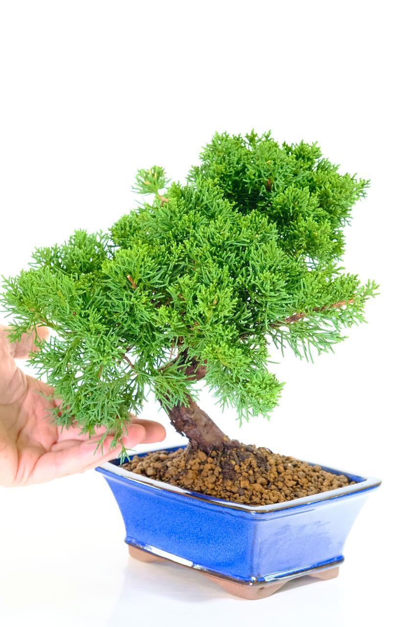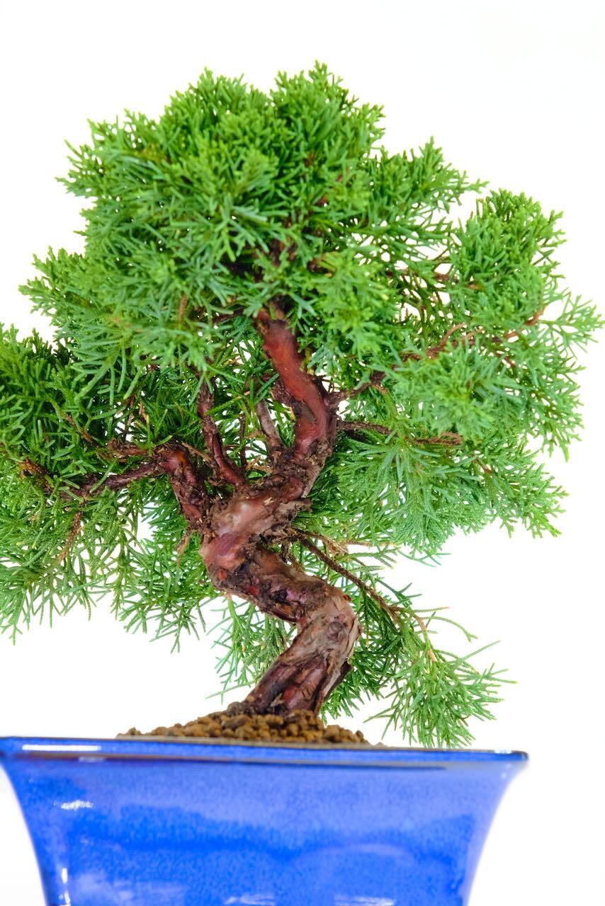 Dwarf Chinese Juniper Bonsai Tree | 14-Year-Old Evergreen with Dramatic Twists & Royal Blue Pot