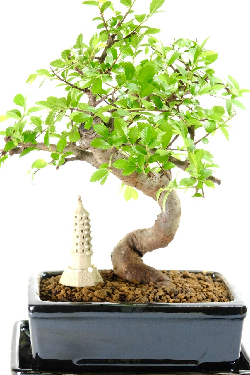 A powerful 11-year-old dwarf Ulmus parvifolia with a thick trunk and lively lime-green new growth.