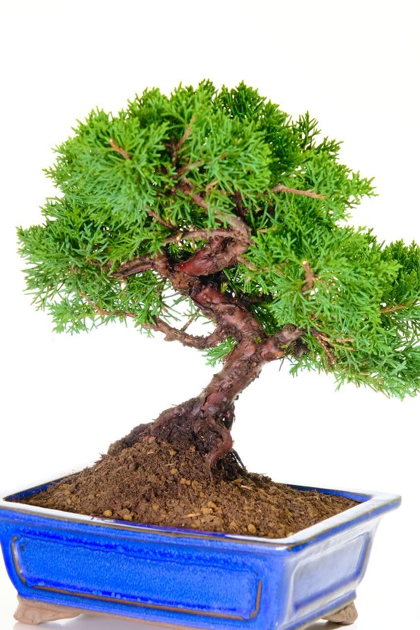 Potted in a brand-new royal blue glazed ceramic pot, the bonsai immediately commands attention. The deep blue glaze enhances the vibrant evergreen foliage, while also drawing out the reddish cinnamon tones in the bark. Together, the colours create a bold, luxurious composition that feels both traditional and strikingly modern.