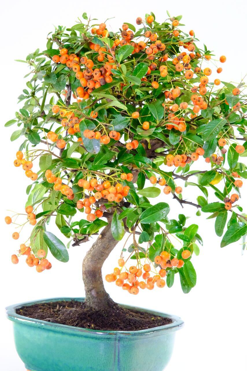 17-Year-Old Flowering Pyracantha Bonsai Tree | Fiery Orange Winter Berries & Stunning Twisty Trunk in Forest Green Pot