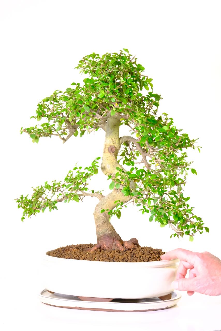 This is the exact bonsai which you will receive! Enjoy the commanding presence of this spectacular and large bonsai, featuring a twisty trunk shape, fantastic exposed roots, and captivating gnarly features along the bark. The Ulmus Parvifolia, is in our opinion, the vey best representation of a woodland tree. The scale and proportions are exceptional.