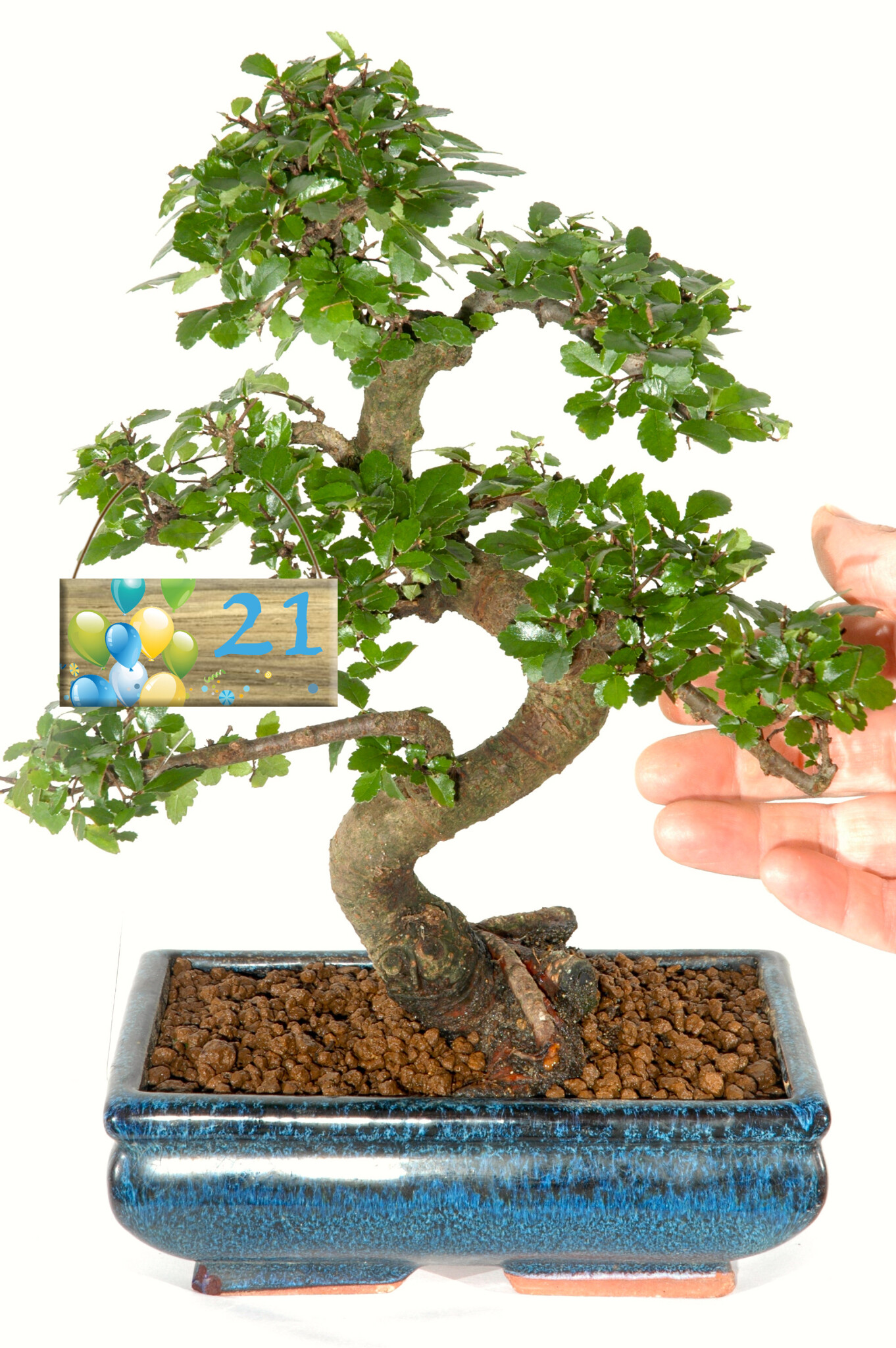 Every milestone bonsai includes a wooden balloon-design tag to mark the occasion. It adds a cheerful and celebratory touch while remaining tasteful and understated. The symbolism of the Chinese Elm makes this gift even more meaningful. This species represents inner strength, intuition, wisdom and love. All fitting sentiments for stepping confidently into the next decade of life.