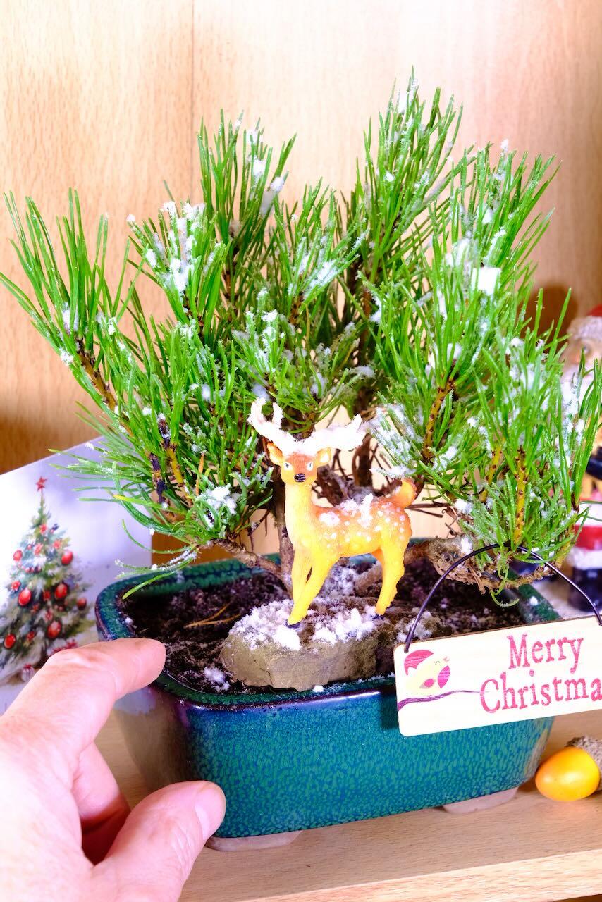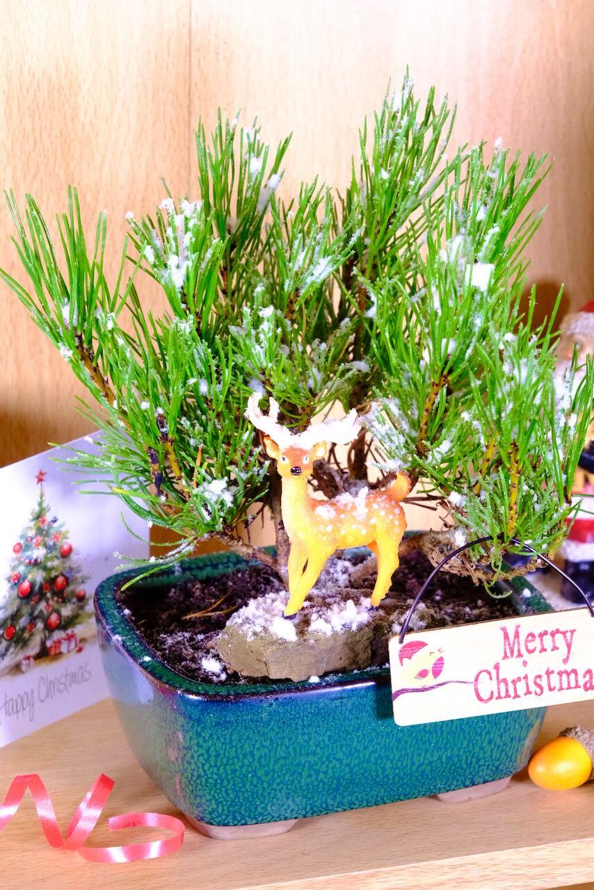 A Charming Festive Outdoor Bonsai in a Forest Green Pot