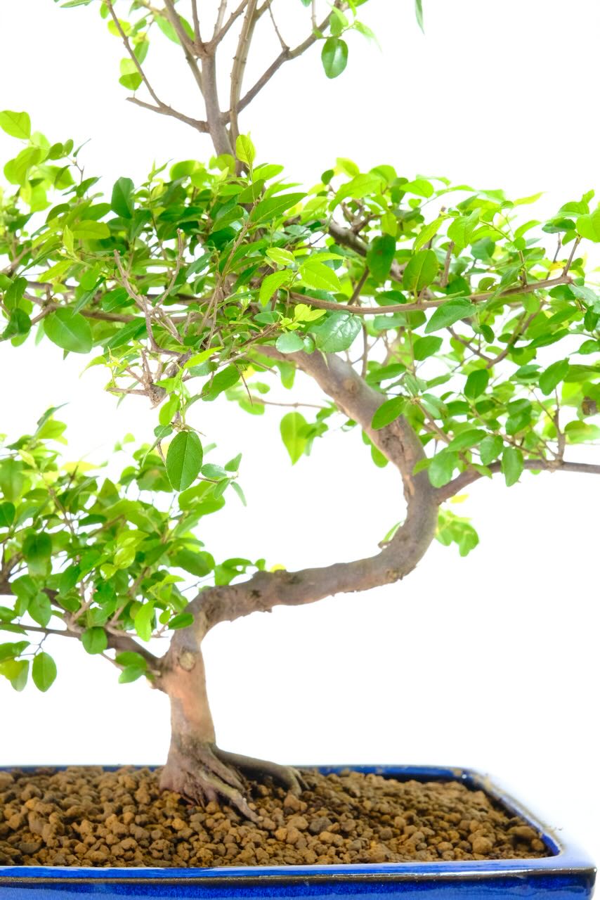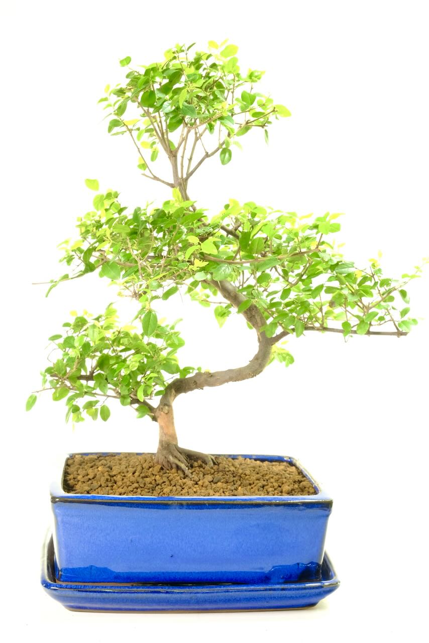 This Premium Sageretia theezans (Chinese Sweet Plum) bonsai features a twisty, artistic trunk with flowing curves, exposed roots, and vibrant foliage, making it a striking indoor fruiting bonsai tree. Potted in an eye-catching ceramic pot with a matching drip tray, it will produce small purple fruits in summer, adding seasonal interest and colour. Perfect for beginners and gift-giving, it comes with a care guide and optional extras. Grown by the family-run Bonsai Direct nursery using sustainable practices, each Premium tree is individually photographed to ensure you receive the exact bonsai shown, reflecting quality, craftsmanship, and care.