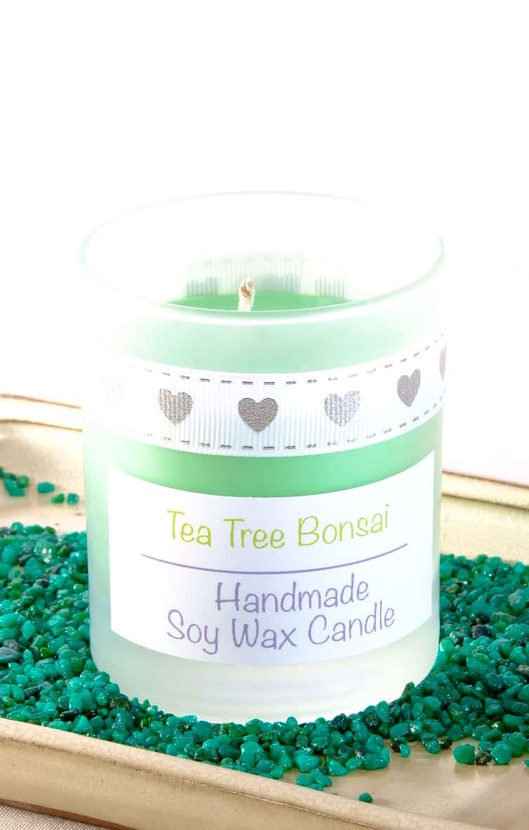 A divine fragrance – Tea Tree scented with emerald green coloured wax.